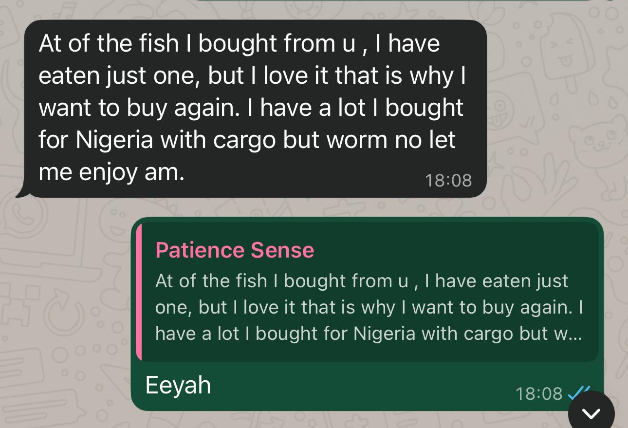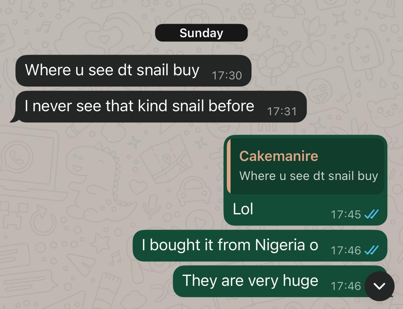 A customer happy with our Jumbo sized snail straight from Naija